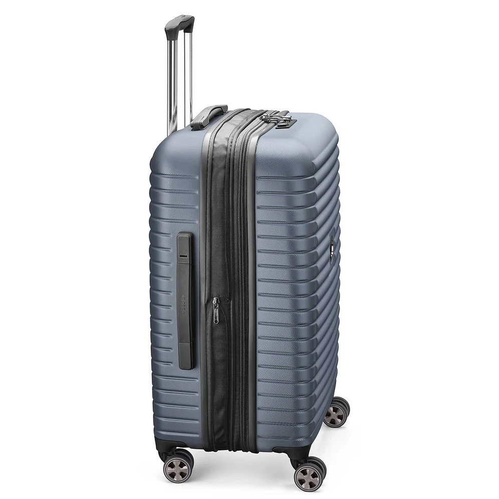 A smart bag inside and out! The Cruise 3.0 collection is equipped with a USB port and a power bank sleeve to power up devices on the go (power bank not included). It also features dual-density spinner wheels for superior mobility, and three carry handles – on the top, on the side and at the bottom – providing maximum convenience when lifting a fully packed case. A WELL-DESIGNED INTERIOR Packing your suitcase has never been so easy ! The interior is expandable for maximum flexibility. It features two full packing compartments with elastic straps and a mesh divider to secure your belongings. Thanks to the removable and washable lining, you no longer need to worry about spills or dirt inside your suitcase : unzip the lining and wash it on delicate cycle so the inside of your bag is perfectly clean for your next getaway!